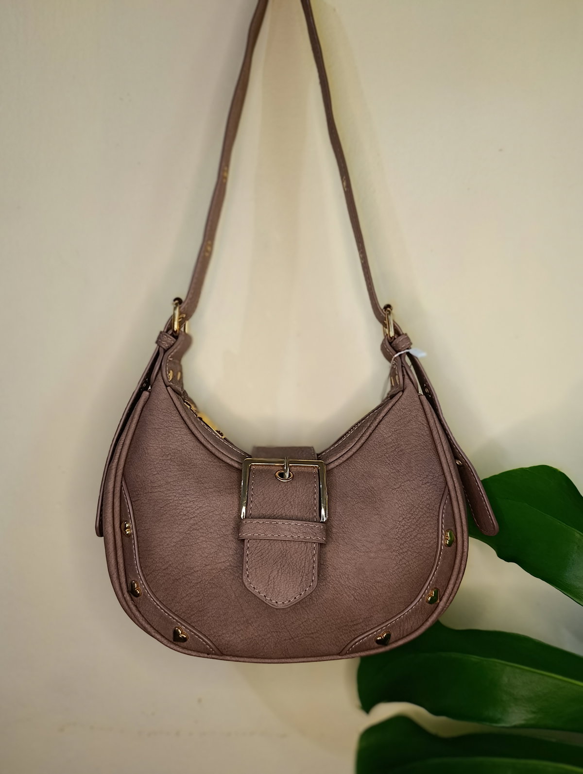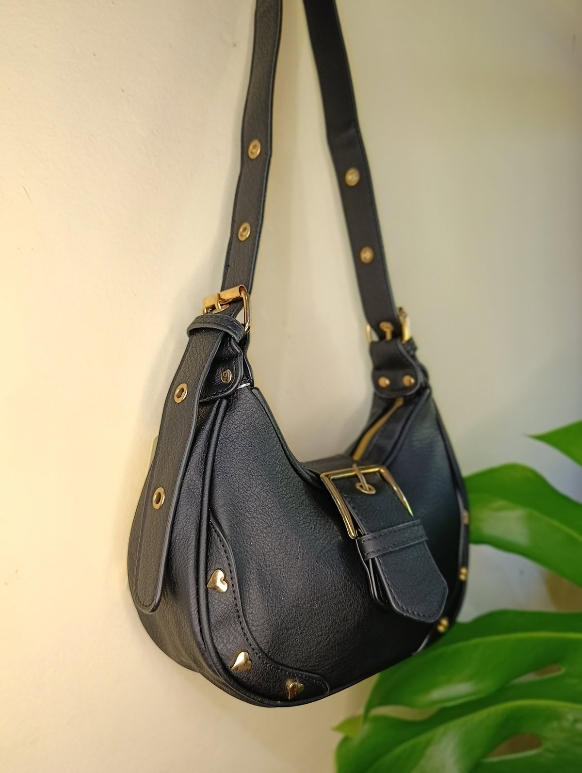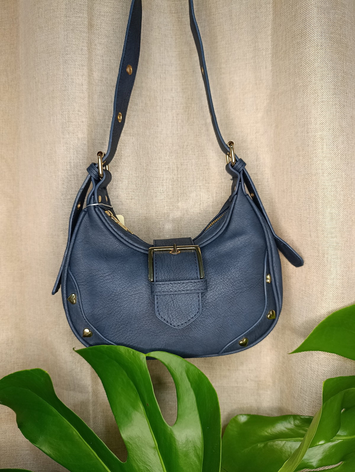 ¡El modelo que vas a querer usar con todo! Esta cartera tipo hobo combina una silueta moderna con detalles delicados que la hacen única. Confeccionada en material sintético con textura visual símil cuero envejecido, destaca por su diseño curvo que es tendencia absoluta esta temporada.