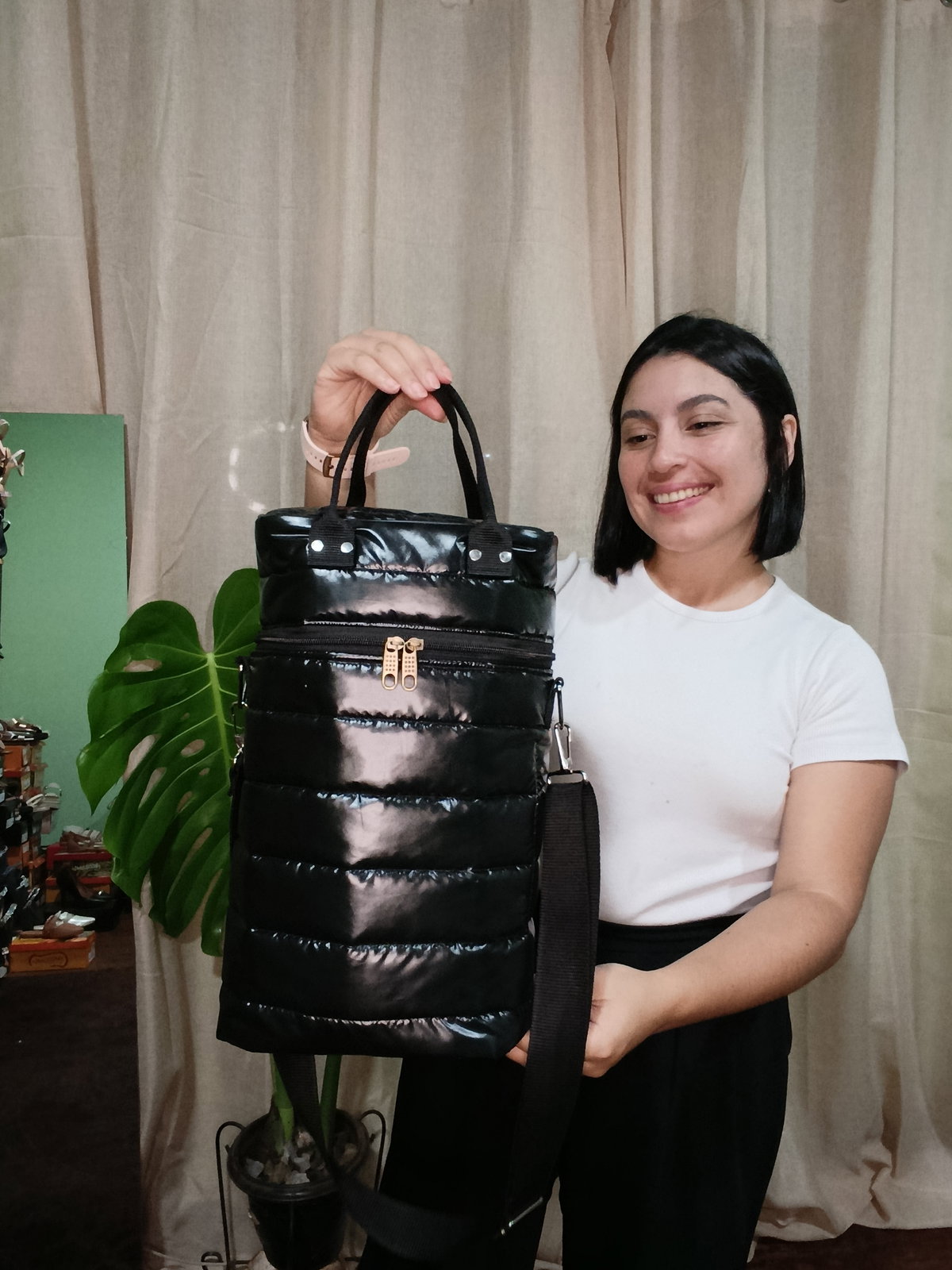 Un bolso diseñado para cargar con tu equipo de mate completo y mucho mas, resistente de gran capacidad, impermeable, cuenta con manijas y correa regulable y desmontable, su amplio compartimento te brinda la oportunidad de salir comoda, con todos tus esenciales y lo mejor acompaña o levanta tus outfit.