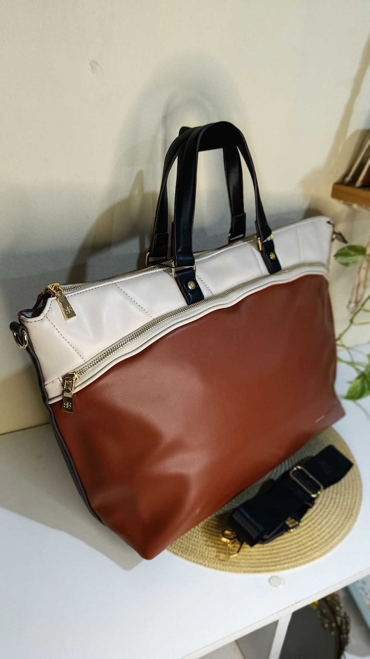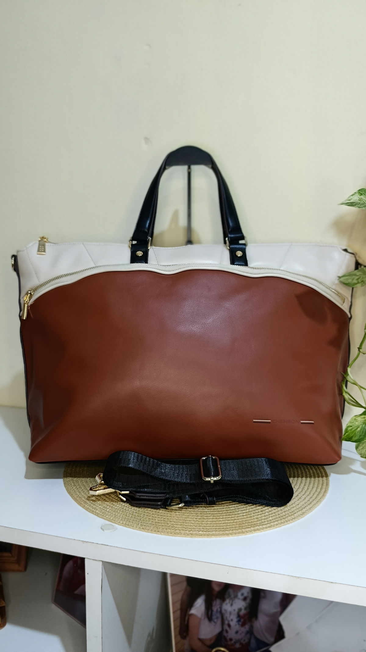 Lleva tu estilo profesional al siguiente nivel con esta exclusiva bolsa tote de la marca Chenson. Diseñada para la mujer que busca un equilibrio entre la sobriedad del negro y la calidez del color vino, esta pieza es el complemento perfecto para tus días de oficina o viajes de negocios.