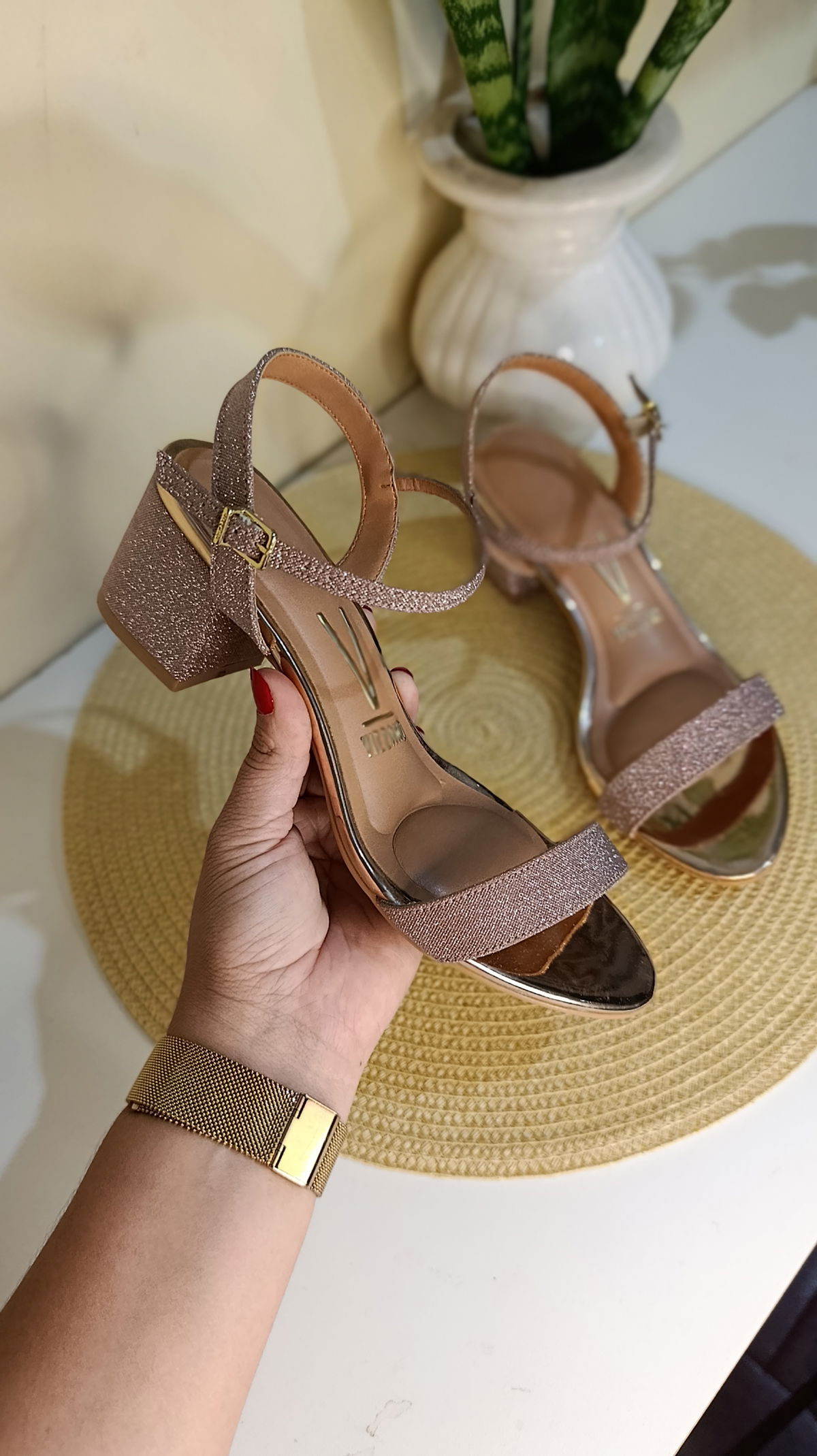 Acabado Metalizado: Confeccionadas en material textil con brillo glitter en tono Rose Gold, ideal para combinar con accesorios dorados o plateados.