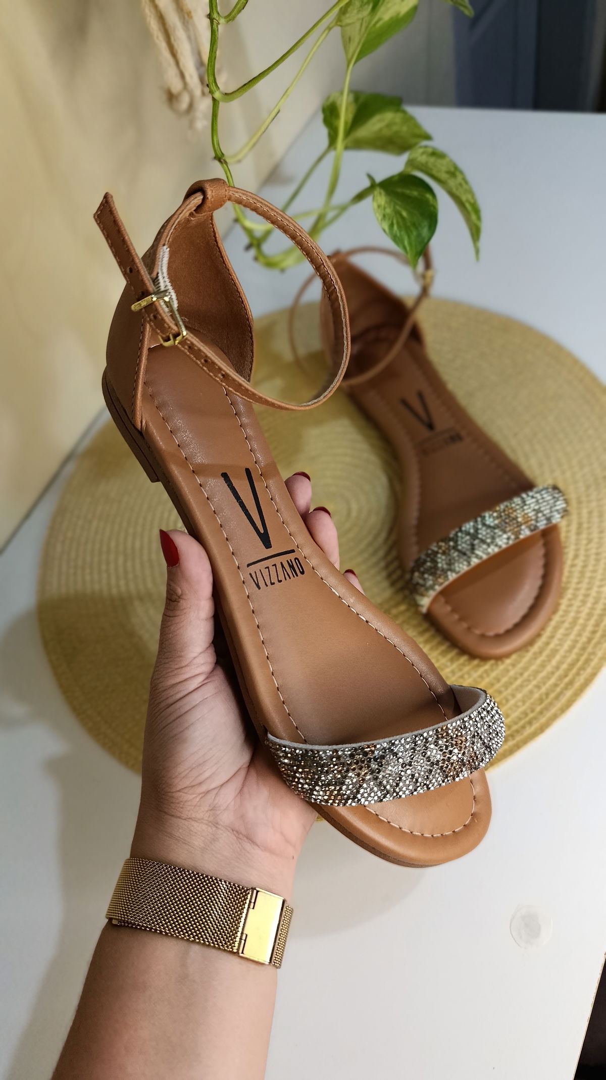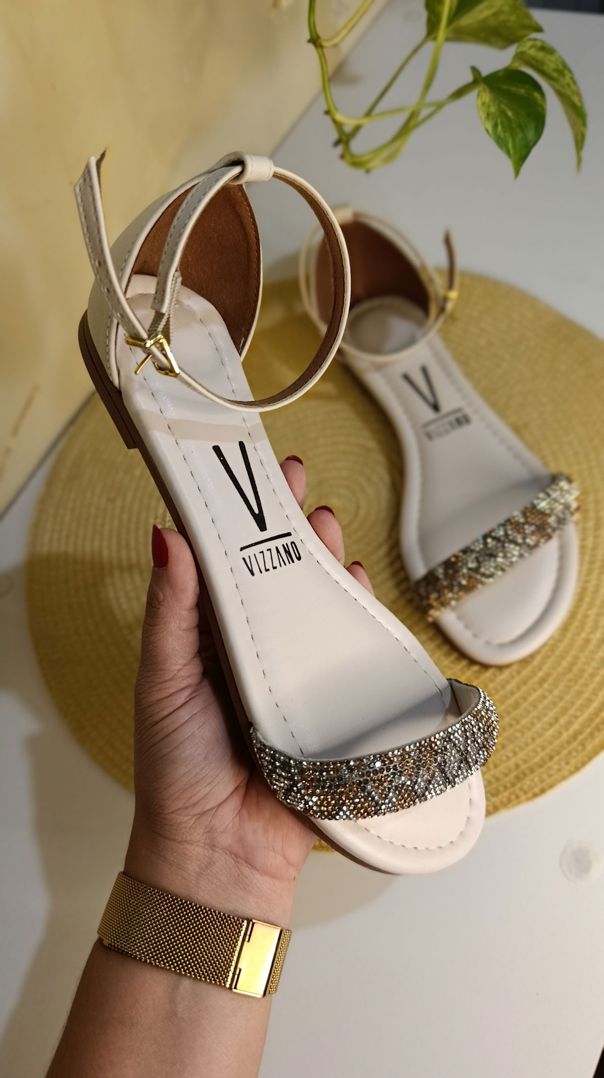 Elegancia y frescura en cada paso. Esta sandalia Vizzano combina la practicidad de una chatita con la sofisticación de los cristales. Con un diseño de tira única y pulsera al tobillo, es el modelo perfecto para acompañarte desde una tarde de paseo hasta una cena relajada frente al mar.