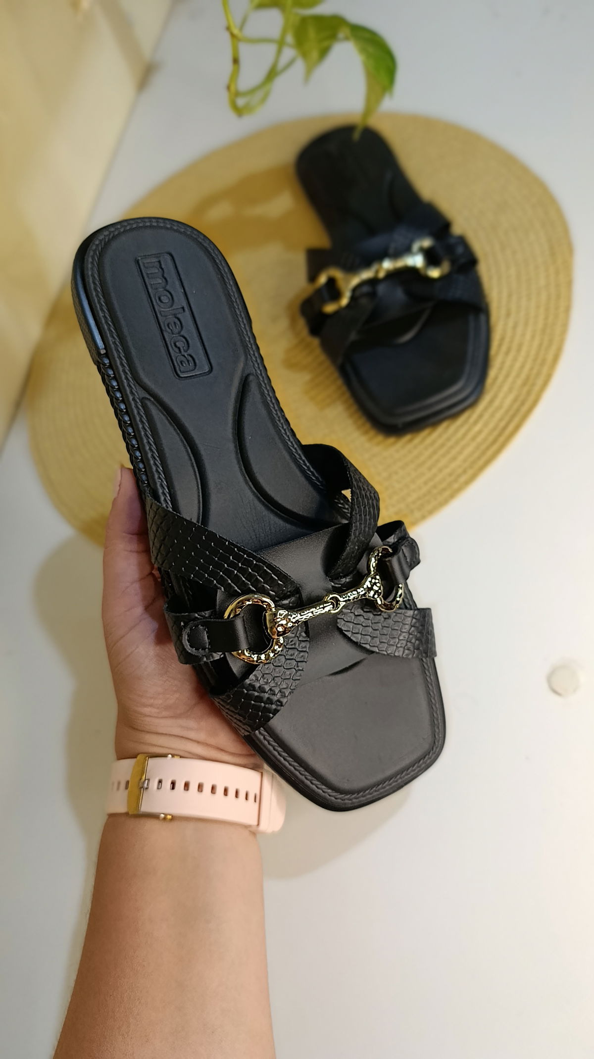 ¡El toque de lujo que tus pies pedían! ✨ Estas sandalias de la marca Moleca combinan la textura clásica del snake print con la sofisticación de un herraje dorado tipo bocado. Son el complemento perfecto para elevar cualquier look, desde unos jeans casuales hasta un vestido vaporoso de verano.